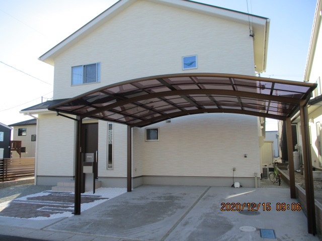 ここではレンガのインターロッキングを主とし、まわりには白の玉砂利を敷いています。